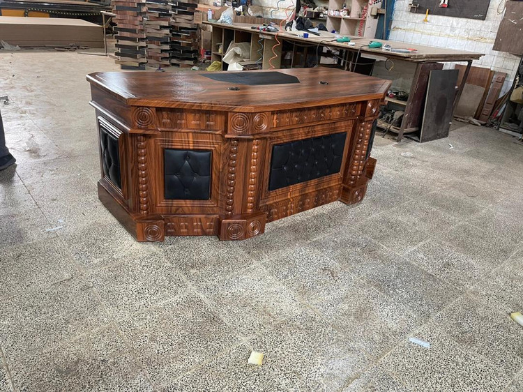 میز مدیریت تمام ام دی اف تمام وکیوم. سایز220در90 با ال همسطح. سایزهای2متر سفارشی ساخته میشود. در رنگ های کلیاف و طوسی سادهو بتنی